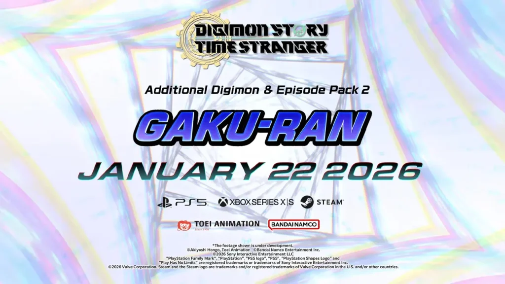 Vi avevamo già parlato del secondo pacchetto DLC di Digimon Story Time Stranger in un precedente articolo, nel quale era noto soltanto il mese di lancio e non la data esatta. Bene, oggi Bandai Namco ha svelato ufficialmente la data di uscita dell’Additional Digimon & Episode Pack 2: GAKU-RAN: il DLC sarà disponibile da domani, giovedì 22 gennaio 2026.