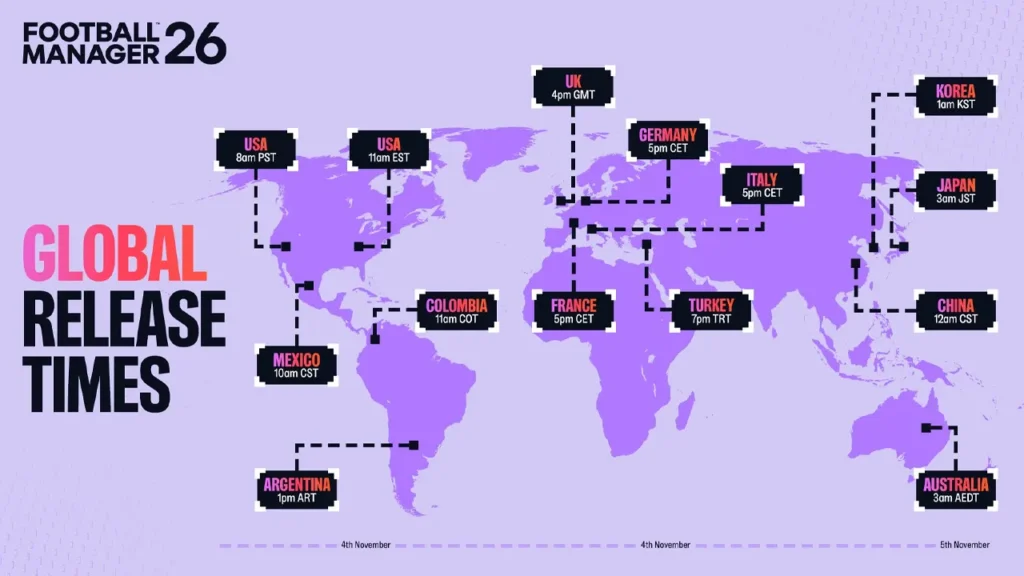 Sports Interactive ha finalmente svelato uno dei dettagli più attesi dai giocatori: gli orari di lancio globali di Football Manager 2026. Il nuovo capitolo della serie manageriale debutterà oggi, con un rollout mondiale sincronizzato che permetterà a tutti gli allenatori, su PC e console, di scendere in campo nello stesso momento, indipendentemente dal Paese.