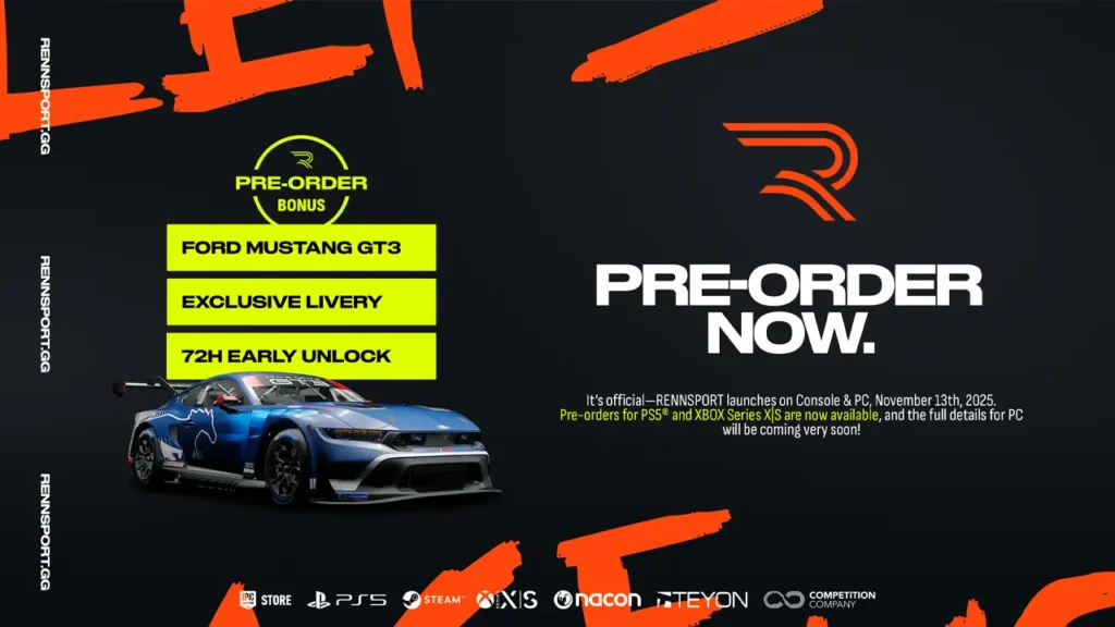 Rennsport è un sim racing che al debutto proporrà 18 vetture provenienti dal mondo delle auto GT e 13 circuiti già confermati con diversi layout. Sarà disponibile una modalità Carriera single player, con avversari controllati dall’IA, oltre a un comparto multiplayer con supporto al crossplay tra piattaforme e basato su un vero e proprio sistema di ranking globale dei piloti.