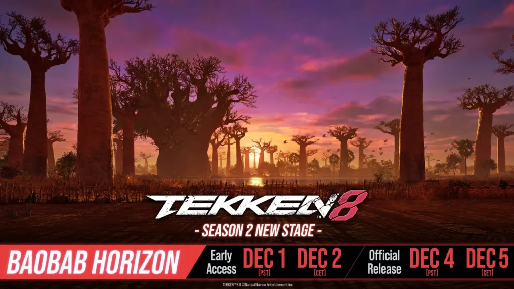Insieme alla nuova combattente è stato presentato anche il nuovo stage Baobab Horizon, ispirato ai viaggi del team di sviluppo in Madagascar. Lo scenario consente ai giocatori di affrontarsi tra maestosi baobab e fauna selvaggia. Lo stage sarà incluso nel Character and Stage Pass dell’Anno 2 e disponibile anche per l’acquisto separato.